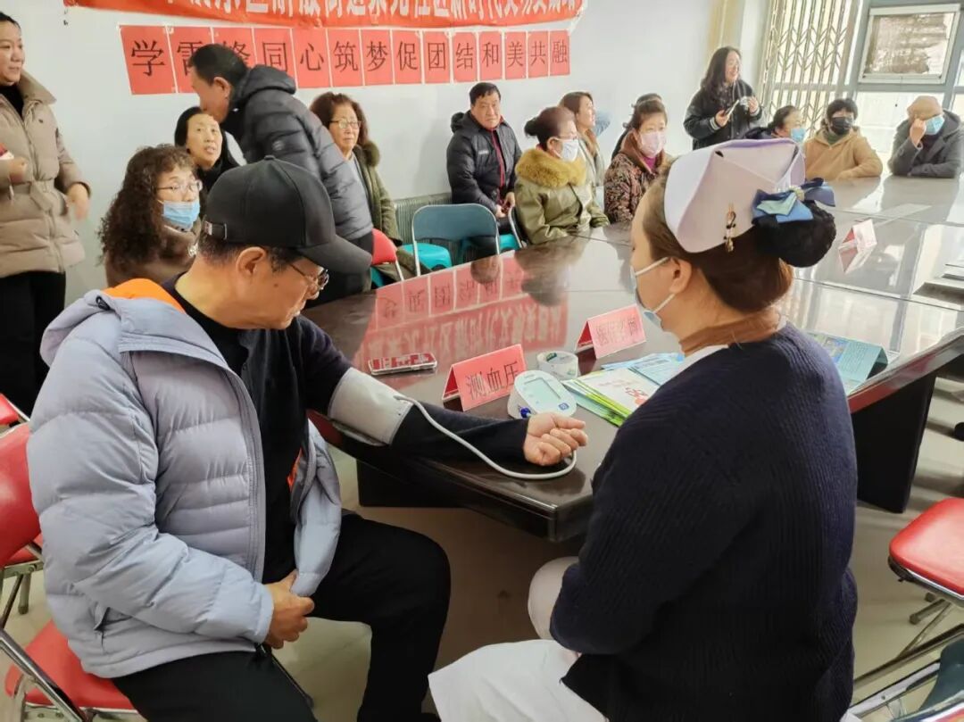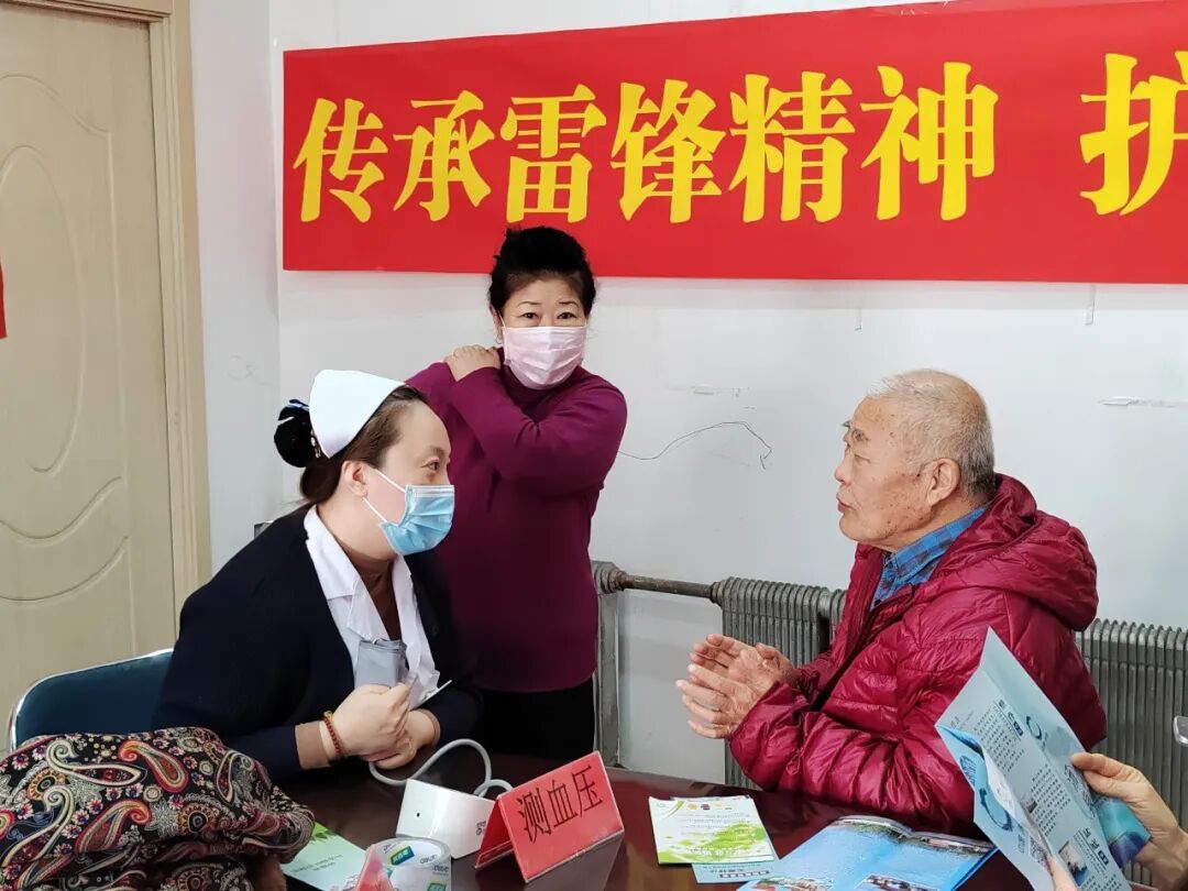 神经损伤康复科的医生为老年人讲解心脑血管疾病的预防知识;疼痛科医生针对不同年龄段群众的疼痛困扰,细致讲解预防和治疗方式;护士为群众测量血压并介绍相关知识,专业的操作与耐心的态度赢得了大爷们的信赖;群众排队深度体验汤岗子“北派”按摩手法的神奇。