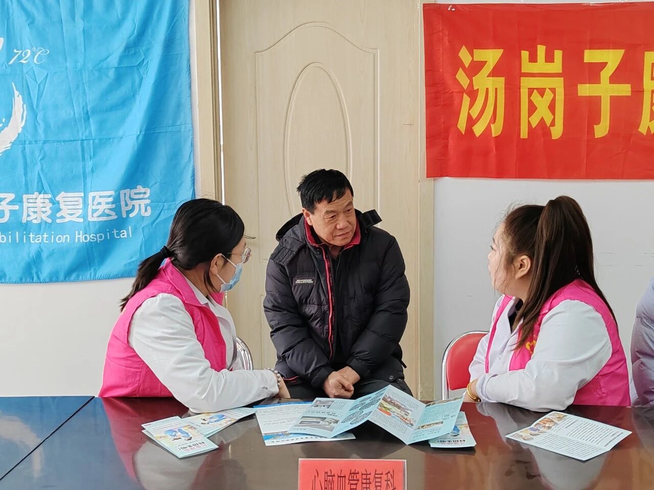 神经损伤康复科的医生为老年人讲解心脑血管疾病的预防知识;疼痛科医生针对不同年龄段群众的疼痛困扰,细致讲解预防和治疗方式;护士为群众测量血压并介绍相关知识,专业的操作与耐心的态度赢得了大爷们的信赖;群众排队深度体验汤岗子“北派”按摩手法的神奇。